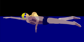 3、两手分开到达到最大宽度后,手臂转为向内、向上和向后划水,手臂上抬时保持高肘屈臂。两手在胸下或腹下时,手之间的距离最近。