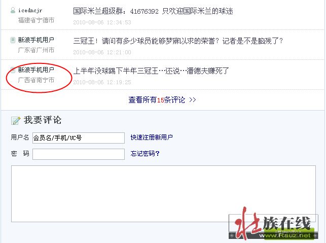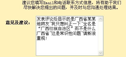 新浪网广西网友留言所有地区被显示为“广西省……“ |