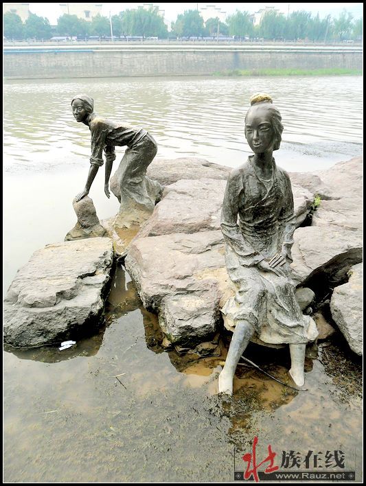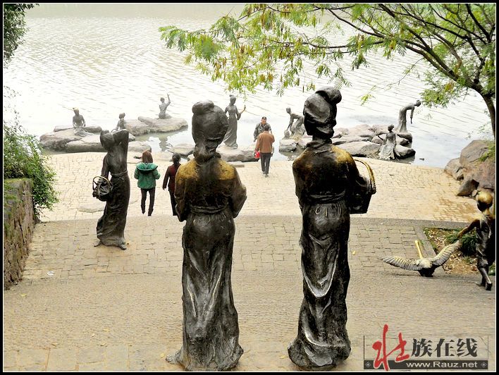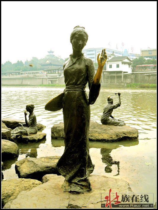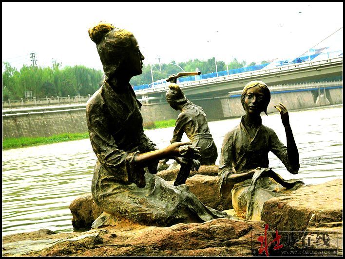 浣纱女.铜像群雕