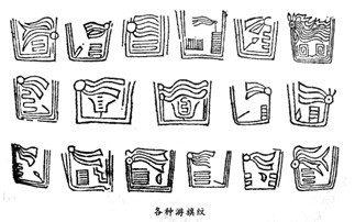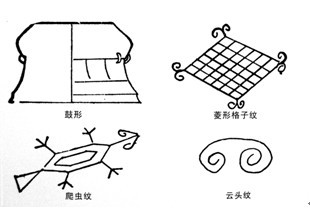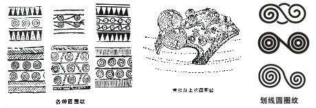 1)圆圈纹:2)席纹3)铜钱纹 4)栉纹5)锯齿纹、垂叶纹    6)菱纹、眼纹、翎眼纹