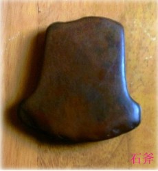 新石器时代右江文化,石斧,器呈木红色,长7厘米,刃口宽6,6厘米,厚1.3厘米。