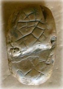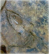 新石器时代右江文化,刻渔纹人头形象石[局部]。