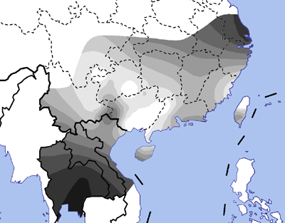 2.百濮:个人认为所谓的“百濮”实际就是孟高棉在中国境内M系超单倍群高发的分支。百濮的主要特点是M7b*高发。M7b的高发地区包括:贵州广西交界地区:锦家67%、羿人33%、徕人33%、莫家30%、佯偟30%、毛南28%、田林壮28%、梧州瑶26%等;以及相邻的云南文山自治州:普标28%、拉基27%;台湾原住民:赛夏(40%)、泰雅(30%)。以徕人为例,最显著的特点是古亚洲人南支M7b*(33%)及北支C(23%)高发。