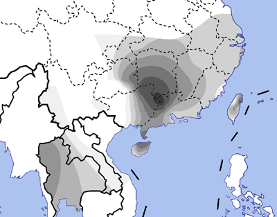 百越第二主成分:显示了早期粤东一个高F1*群体经江西、福建向华东的移民。