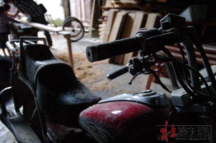 这家男主人不在家,摩托落满厚厚的尘。