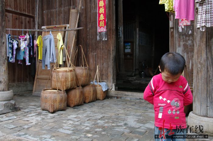 又进一间屋,檐下有几担稻谷,静静地不见屋主人。我们走进去说话的声音引出来一个小男孩,小男孩对我们胸前的大相机好奇,却害羞地不声不吭,我们连问几次你们家大人在吗,他仍不出声,靠在筐边拨弄着筐里的稻谷。王举起相机给小男孩拍了几张,我也拍,拍了给小男孩看相机里的他,小男孩看了抿着嘴乐,又摆了几个动作给我们拍,却始终害羞肯不说话。我们出了他家,他跟着走出来,见我们毫不停留没有再跟他玩的意思,又悻悻地回去了。