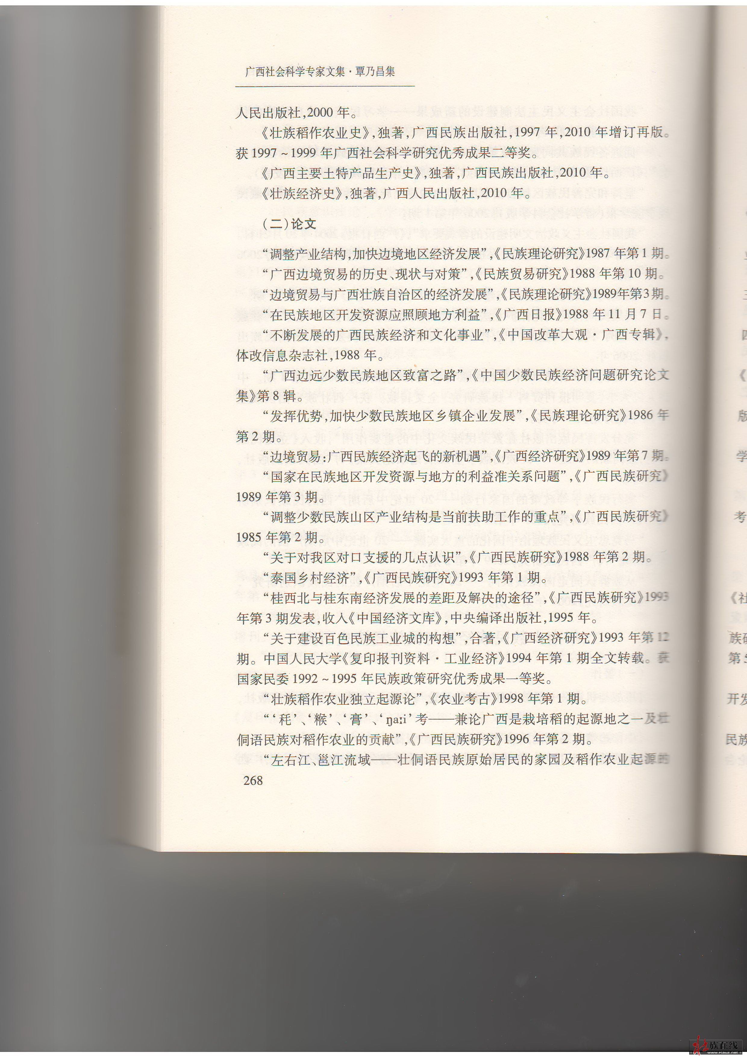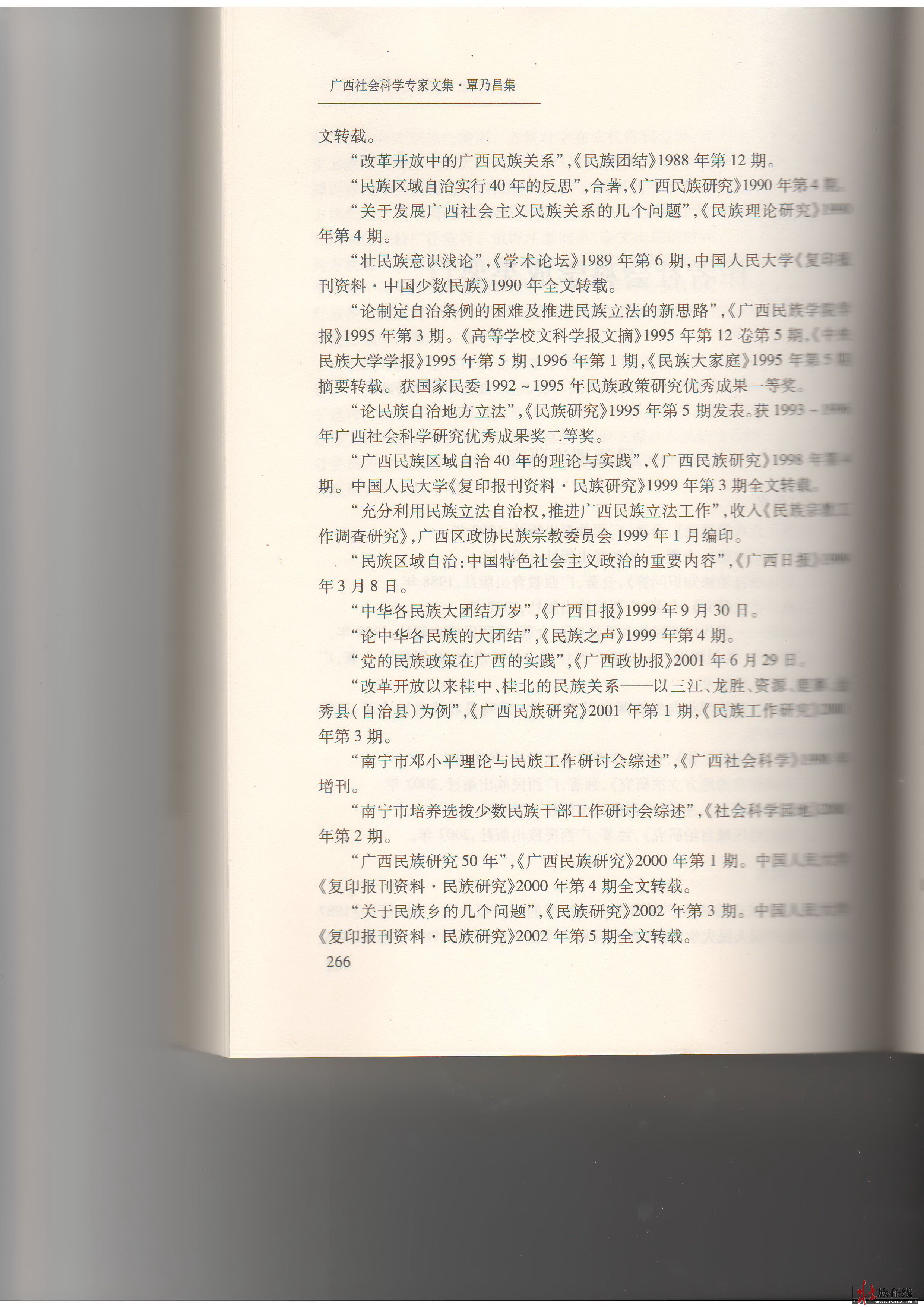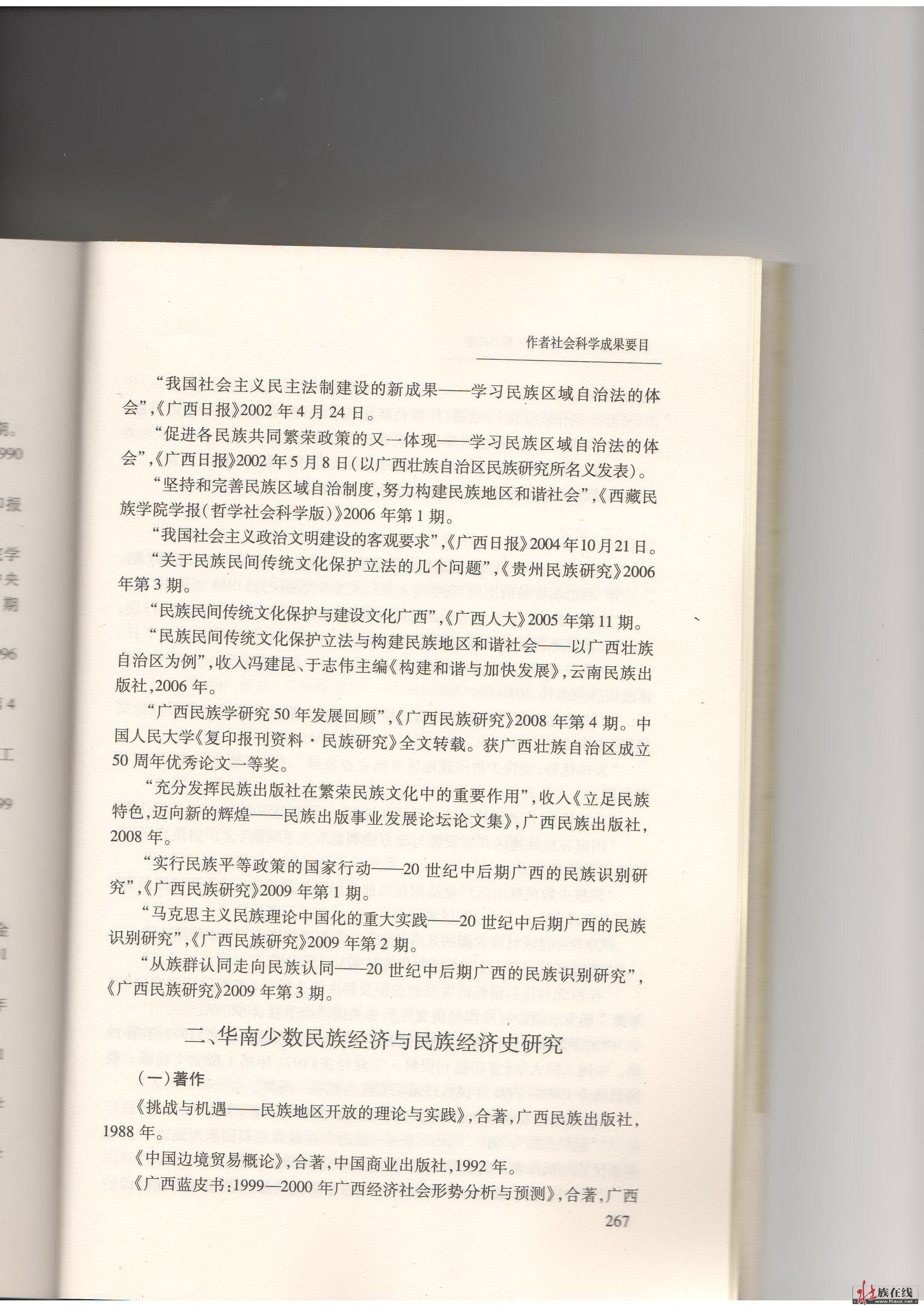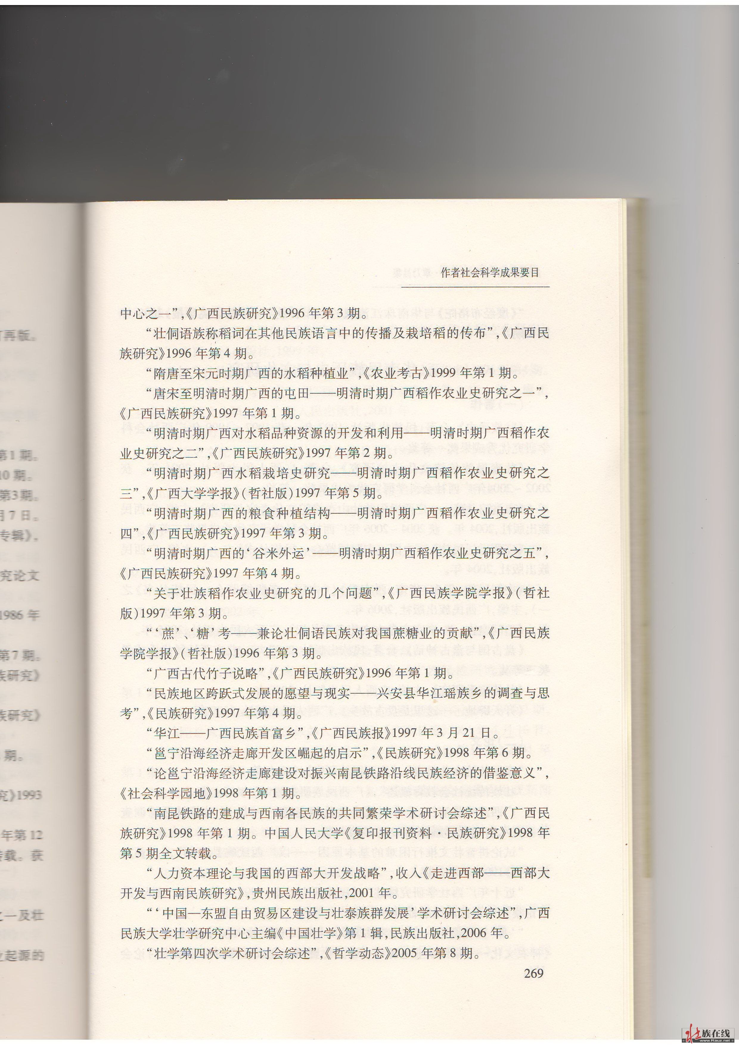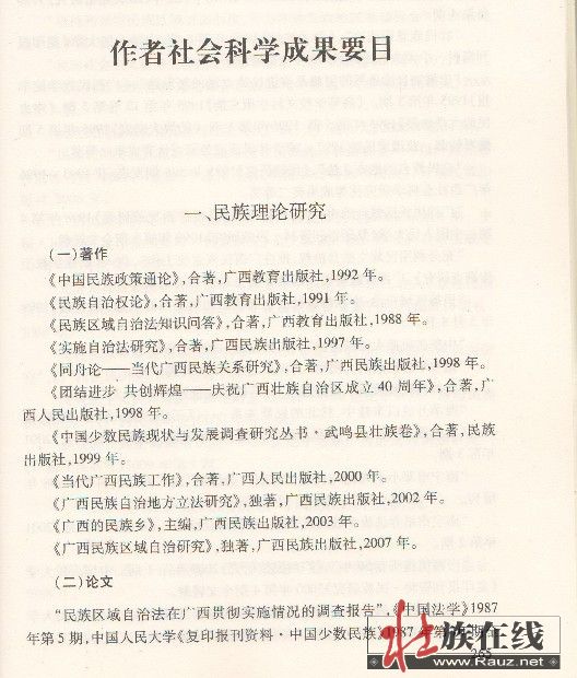 “广西民族研究50年”,《广西民族研究》2000年第1期。中国人民大学《复印报刊资料.民族研究》2000年第4期全文转载。