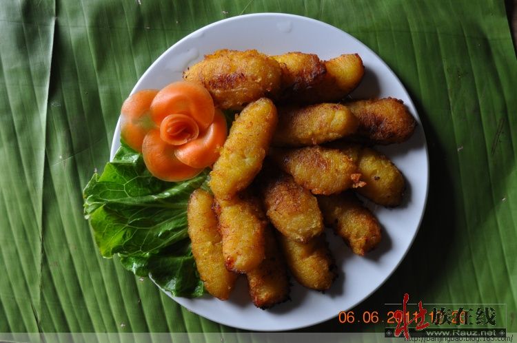 【同期声】恒盯宅傣家乐老板 玉罕:原来山上有很多的野芭蕉,炸出来比较甜,这个可以说是原汁原味的,也不洒什么药,也比较生态。
