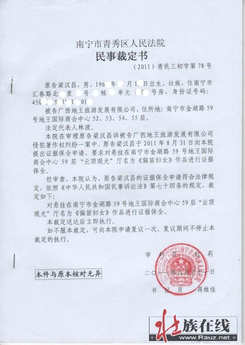 广西地王侵犯梁汉昌碧侬著作权案开庭[转]