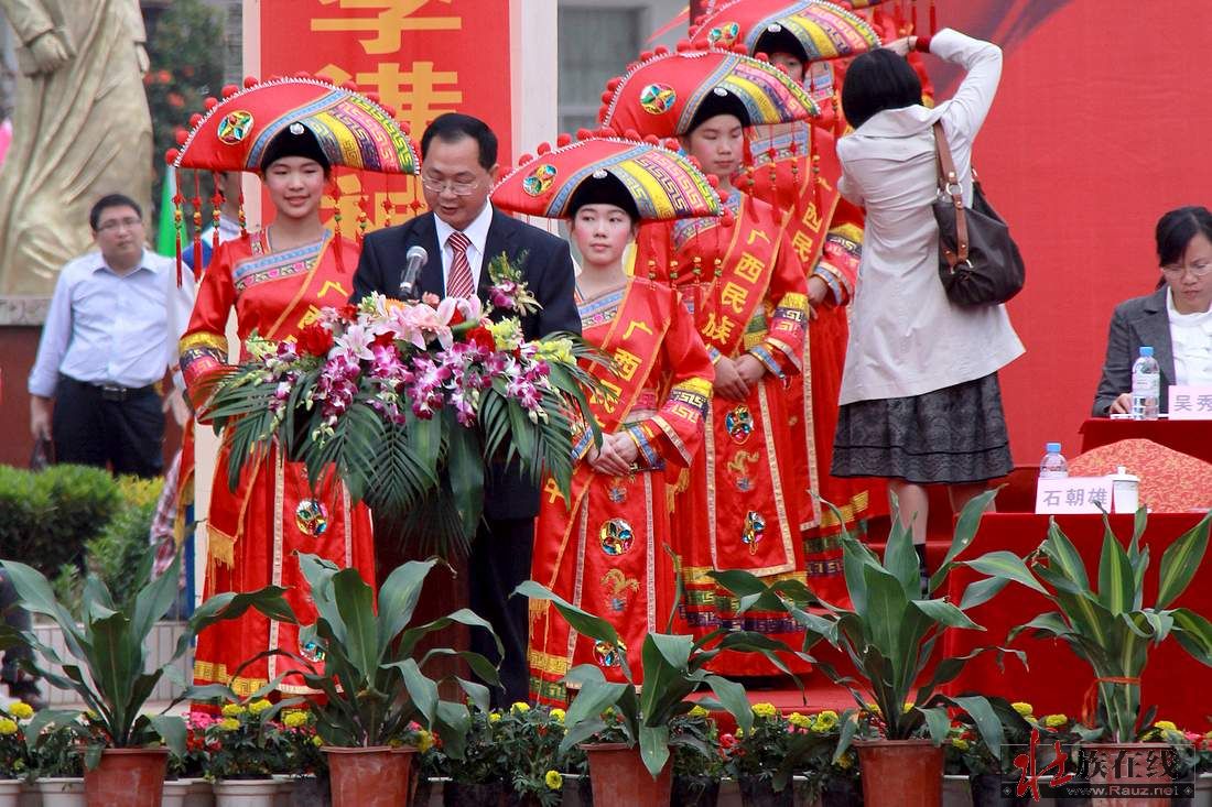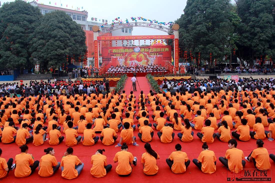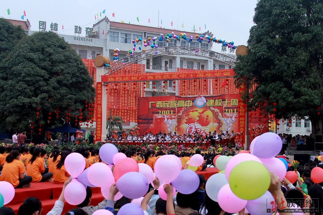 1127日上午,广西民族高中校园里彩旗飘扬,一派欢腾。学校全体师生身着节日盛装,与新老校友、各方嘉宾相聚校园,共庆广西民族高中建校10周年华诞。自治区政协副主席苏道俨、自治区民委主任卢献匾以及宋日正、黄隆鸣、吴秀红、曾丽珍、李茂来等武鸣县领导参加了庆典仪式。