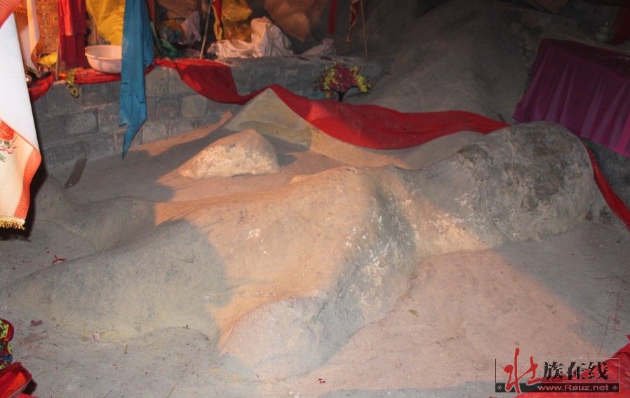 下图为岑王庙中倒地岑王,原来是无头的,当代被群众用水泥补上头。