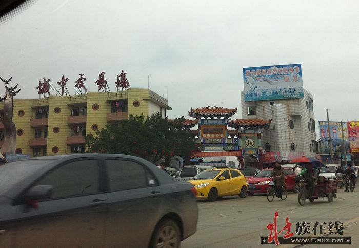 城中交易市场,附近,人多车多。