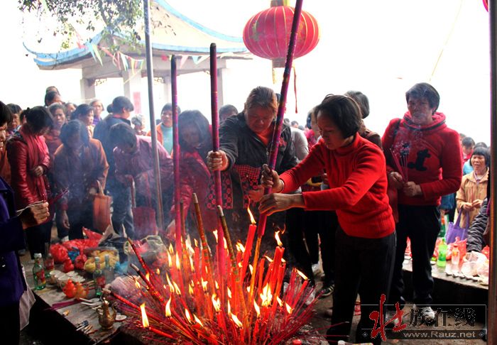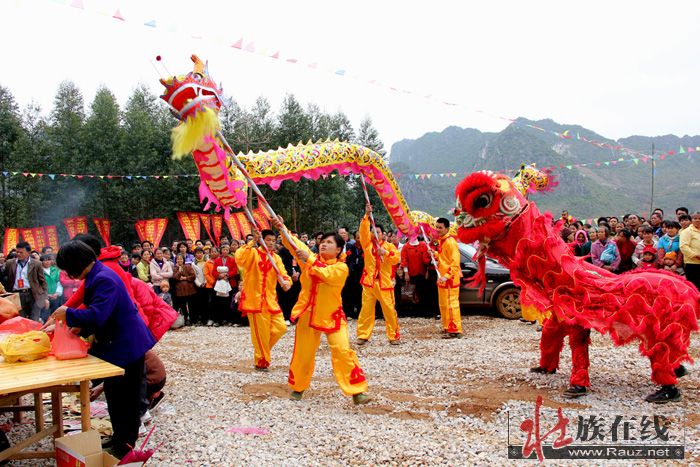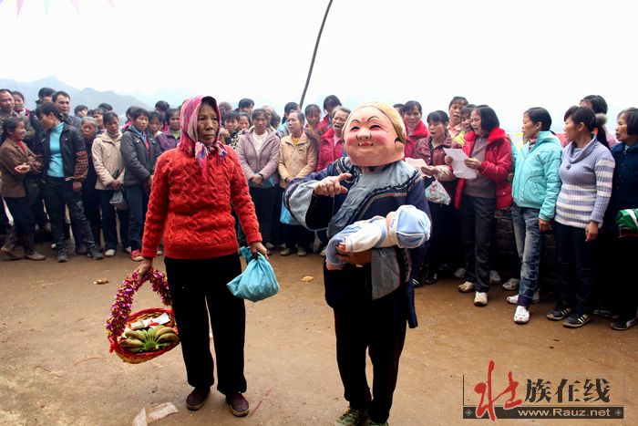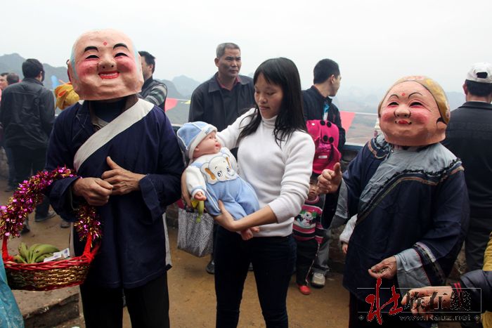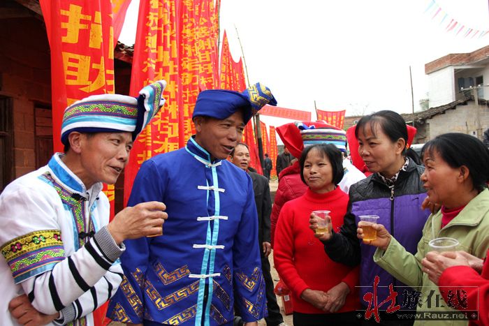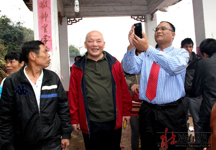 3月7日即农历二月十五,是甘圩镇赖坡村的好日子,该村文化活动中心戏台周围,锣鼓喧天,彩旗飘飘,山歌阵阵,数百条的大红条幅从村口挂到村戏台前,一派热烈祥和的喜庆气氛。这是赖坡村的传统节日,而今年该村村民集资搞龙角山旅游开发,大办民族民俗文化活动,更吸引了邻村乡亲来唱山歌观民俗的极大兴趣。一大早,村民们就为接待来过节、赶庙会的亲朋好友忙开了,整个村子沉浸在热闹喜庆的氛围中。