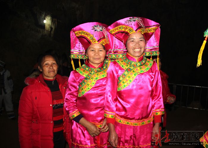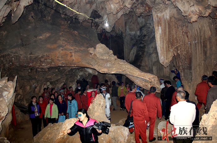 当天,不少游客和村民参加了龙角山庙会,并进入岩洞游览,洞内景致不多,但很经典,洞中有一个 “圣水殿”,村民取“圣水”(岩溶水)的地方,“圣水池”就是一个天然的莲花池,传说取回圣水可以治缺钙的软弱病,还可以保佑理想生育,所以不少香客都要了一瓶圣水带回家。洞府中最奇特的景致就是“龟蛇洞府”,由巨大的天然龟背石罩盖而成,前端伸出一头似龟头又似蛇头。龟石洞府周围都是雪山玉壁,玉柱石幔,如宫殿一般。其他“百合欲放”“深山灵芝”“水晶天坑”“龙宫石幔”等景致也惟妙惟肖、美仑美焕。