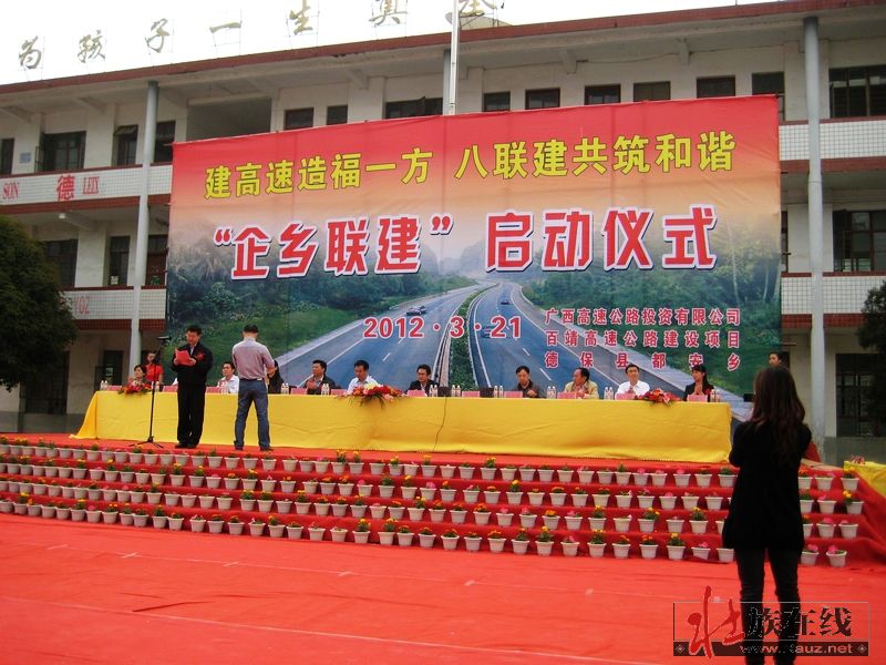 本站讯(2012322日星期四)2012321日,由德保县都安乡党委、人民政府共同主办的广西高速公路投资有限公司百靖高速公路建设项目“建高速造福一方,八联建共筑和谐‘企乡联建’启动仪式”在都安乡中心校举行。仪式上,在广西交通投资集团的赞助之下,广西德保县都安乡党委、政府正式宣布以都安街委业余壮剧团为主成立德保县都安乡壮剧团,并在多年来坚持壮汉双语教学的都安乡中心校成立南路壮剧与马骨胡传承少儿班。