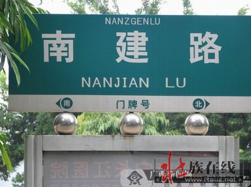 南宁路牌两种拼音 上为壮语下为汉语 |