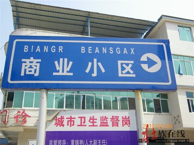 这是我们在望谟县城拍摄到的布依僚文的路牌,除了政府企事业单位招牌一样中了某种“流毒”全盘汉语语法外,路牌全部使用本民族语法和表达方式,这让我们识得文字的人倍感亲切,有尊严得到尊重的强烈感觉!