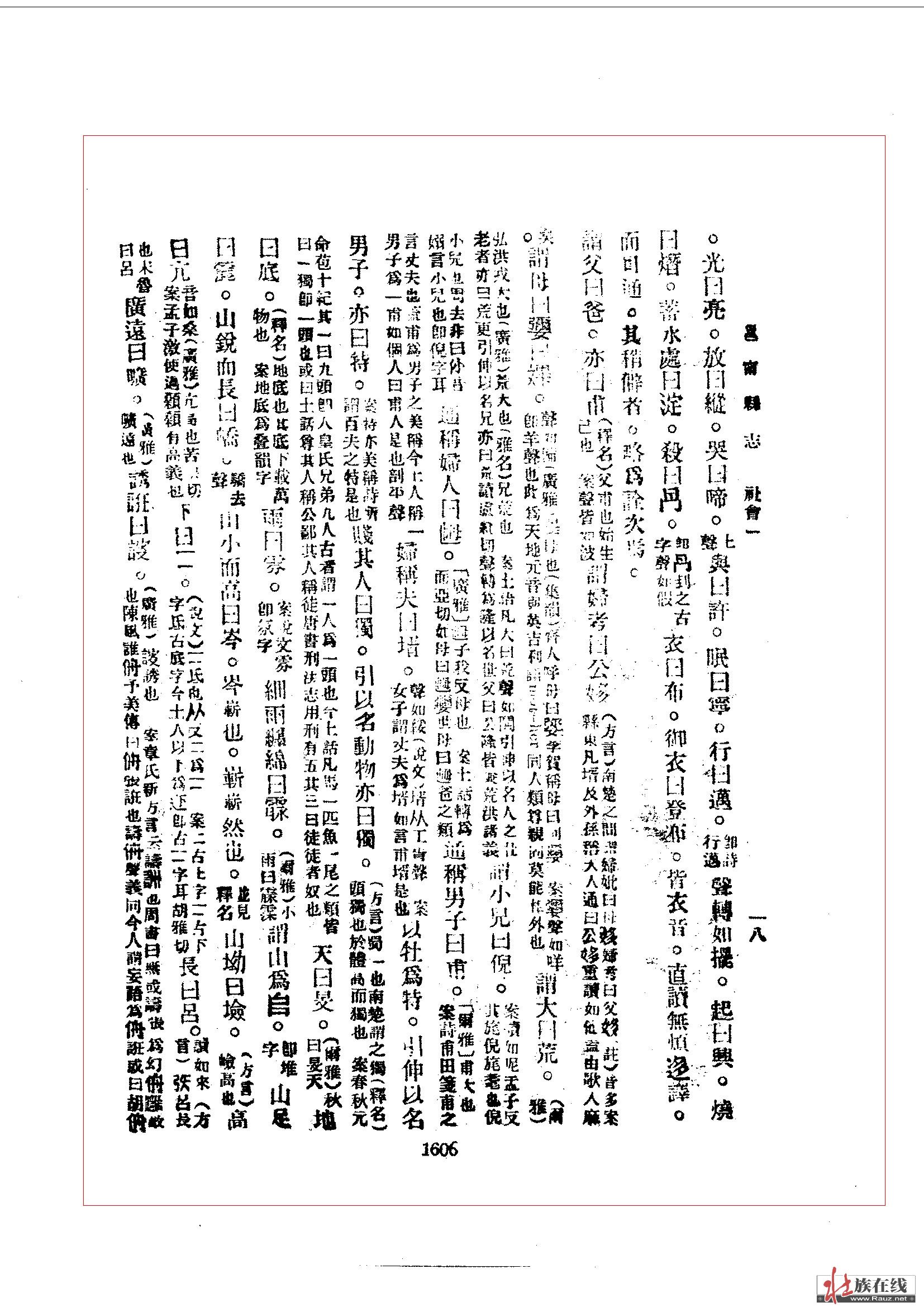 谓大曰荒。(《尔雅》弘洪戎大也《广雅》荒大也《雅名》兄荒也 [?]土语凡大曰荒 声如閧引伸以名人之[?]老者亦曰荒 更引伸以名兄亦曰[?]读虑[?]切声转为隆以名世父曰公隆 皆兼荒洪诸义)