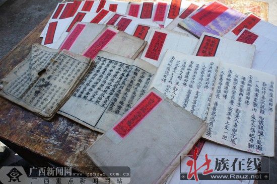 广西新闻网乐业6月11日讯(通讯员 吴桂群 黎启顺)为挖掘和保护非物质文化遗产,近日,乐业县文物工作者在甘田镇四合村那仲屯黄意专家中,发现其留存有《玉皇经》、《明圣经》、《观音救苦经》等80多卷佛教、道教经书,这些经书是从北宋时期流传至今的手抄本和原版,有的从外地流入,有的是在天怀寺通过降乩留下,并藏于甘田镇的天怀寺院里,后因天怀寺被摧毁而流传民间。