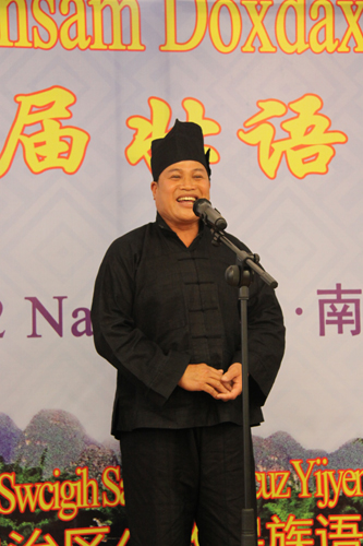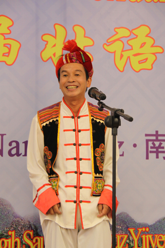 罗景超是一名土生土长的壮家人,也是一名壮族歌师,他是那坡壮族民歌代表性传承人,今年已50岁的他,在舞台上倾情地演唱着美妙动听的山歌,以亲切标准的壮语诉说着自己与壮文山歌的故事。从他激情洋溢的演讲中,观众们感受到了他对国家颁布《壮文方案》的感激之情,对壮乡、壮族山歌文化的无限热爱。