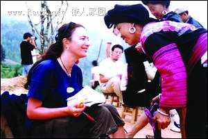 当地妇女跟一位来自南非的女英语教师亲切地打招呼