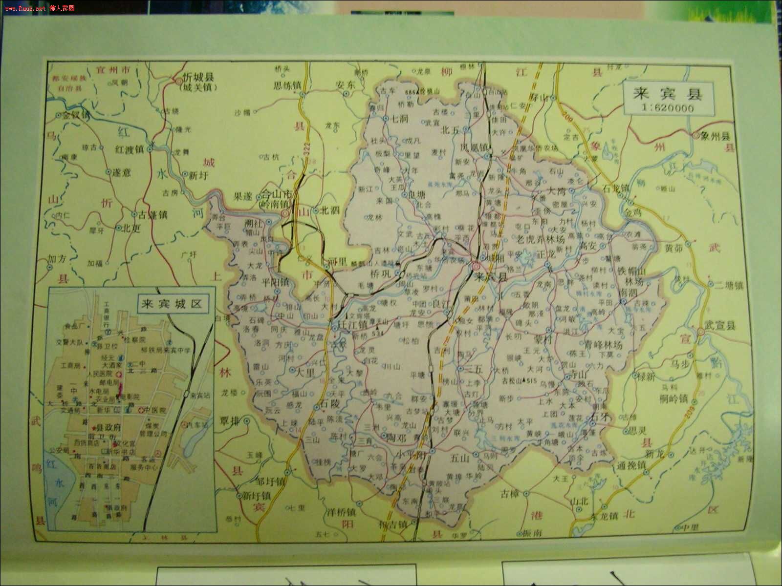 来宾县地图。 摄自《来宾年鉴(1991-2000)》(广西人民出版社2002年12月)。