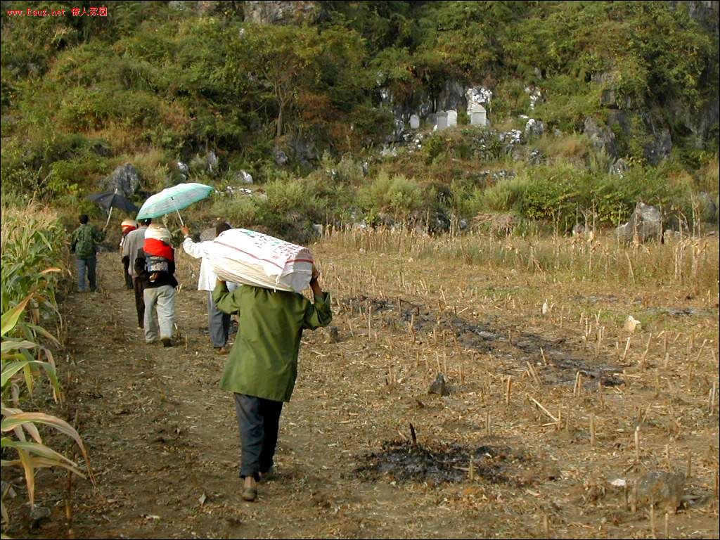 族里有一户人家要迁坟,我想趁这个机会拍些片子也是好的,只是那天起床得晚了,没有拍到全过程,只是拍下了去新墓地的半个过程: