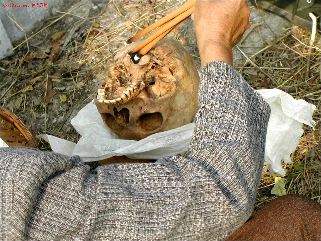 女性则用两块颈椎骨叠放在颅顶上,名曰“官星”