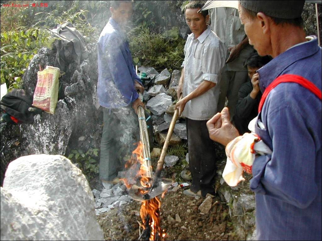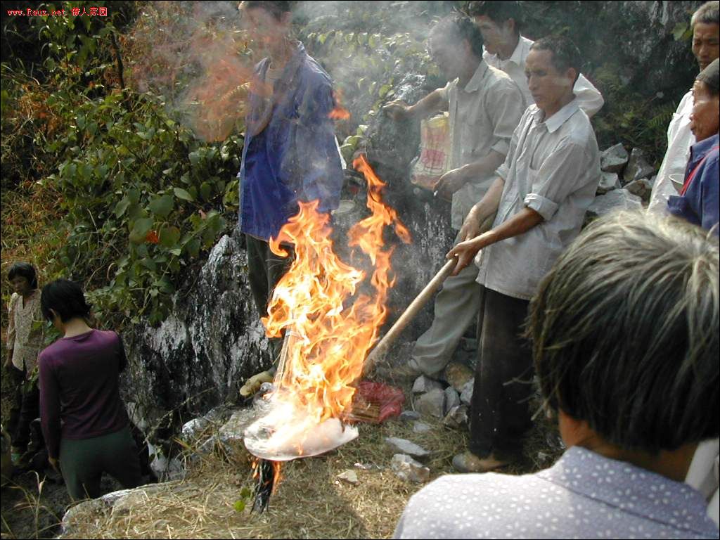 下葬的时间到了,本家一人拿把干柴,另一个拿把铁铲,铲里放油,烧热,
