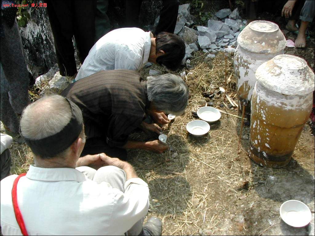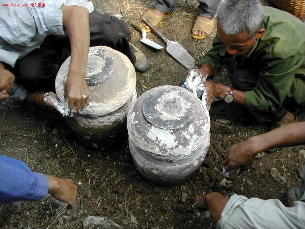 本家和族人开始着手开启龙坛盖子,龙坛其实就是一种长形的大瓦罐,盖子用石灰纸浆泥封死