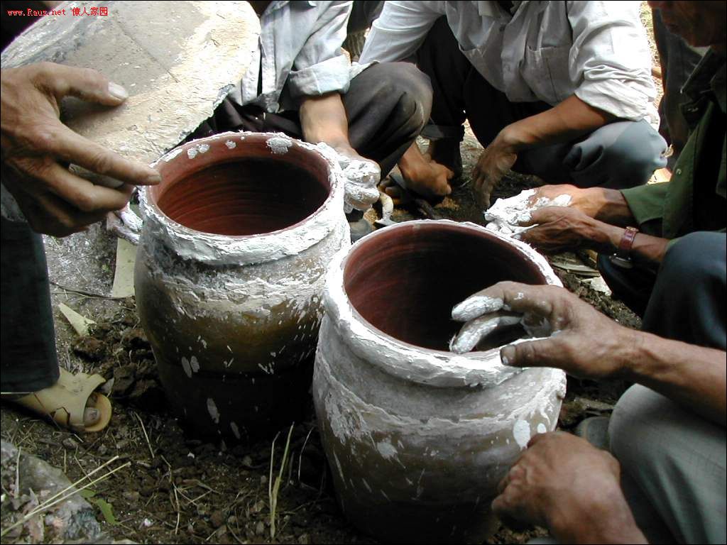 在坛口处沫上石灰纸筋膏,盖上盖子。